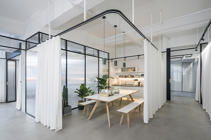 這家辦公室在深圳,一個(gè)透明的單色開放空間,辦公室裝修設(shè)計(jì)上采用了一些工業(yè)設(shè)計(jì)。辦公室裝修的現(xiàn)代建筑的規(guī)律與空間中用作隔斷和陰影的白色亞麻布窗簾的柔軟和微妙形成對(duì)比。下面就跟著華發(fā)小編一起來看看這個(gè)辦公室裝修效果圖吧。